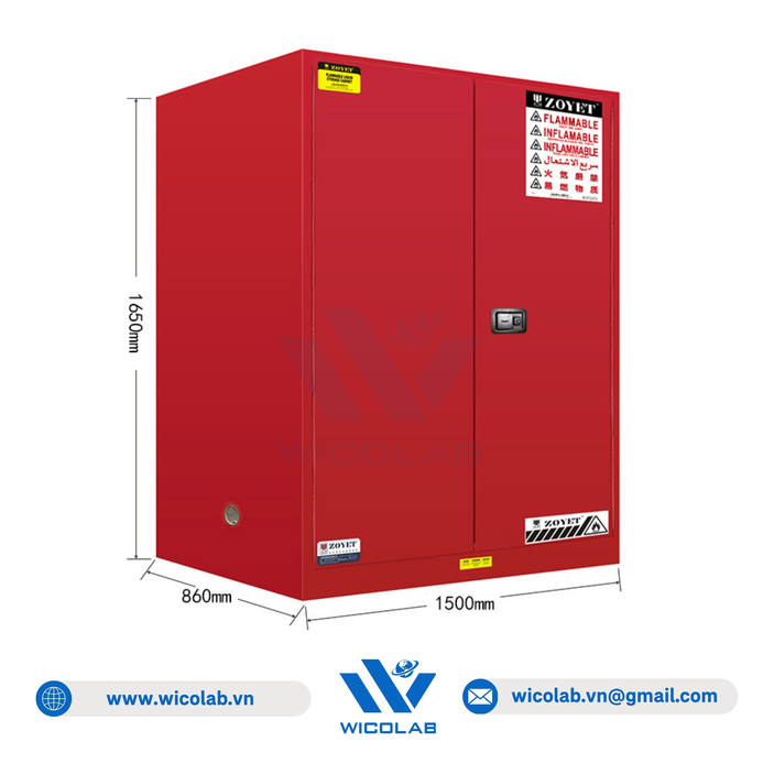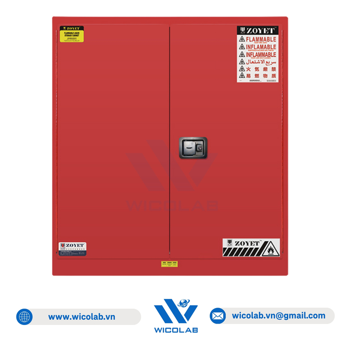 ZYC0110R ⭐ Tủ đựng hóa chất an toàn chống cháy 2 cửa dung tích 410 lít (110 Gal), phù hợp cho các loại mẫu có điểm cháy trên 37,8 độ C. Sản phẩm được sản xuất bởi hãng Zoyet – Trung Quốc. Được nhập khẩu và phân phối chính hãng bởi Wicolab. Bảo hành 12 tháng – Giao hàng toàn quốc