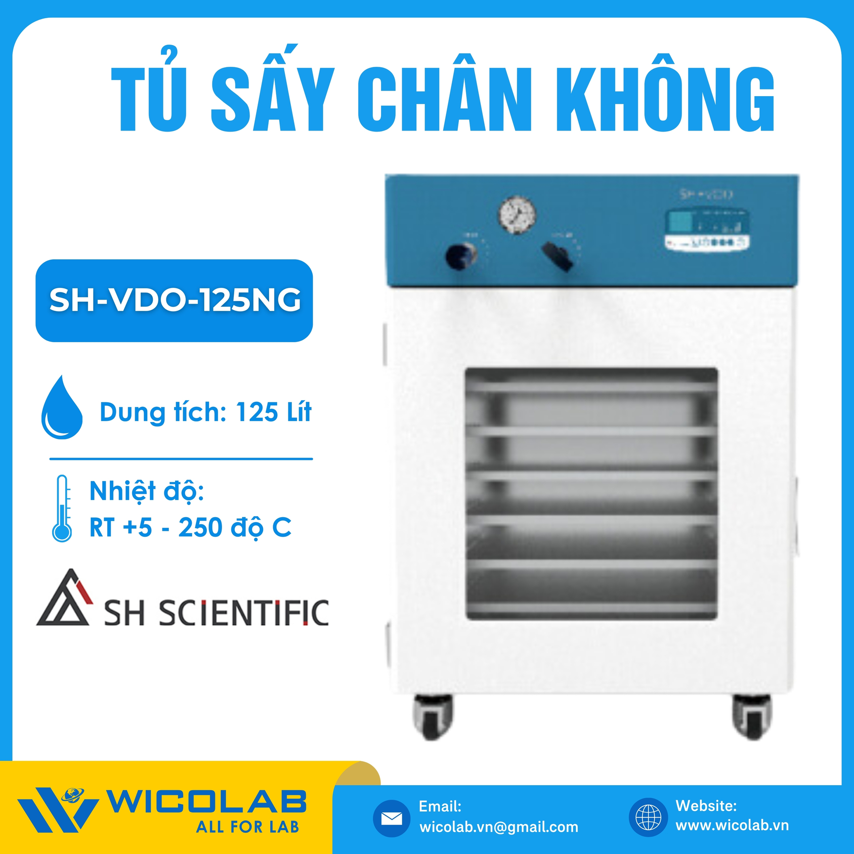 SH-VDO-125NG 🌟 Tủ sấy chân không có độ chân không 0 tới 76 cmHg, nhiệt độ tối đa 250 độ C và có dung tích 125 lít. Tủ được thiết kế và chế tạo bởi hãng SH Scientific - Hàn Quốc. Tủ có mức độ đồng đều nhiệt độ cao, độ chính xác và kiểm soát nhiệt độ ổn định. Sản phẩm được nhập khẩu và phân phối chính hãng bởi WICOLAB. Bảo hành lên tới 12 tháng. Hỗ trợ giao hàng toàn quốc.
