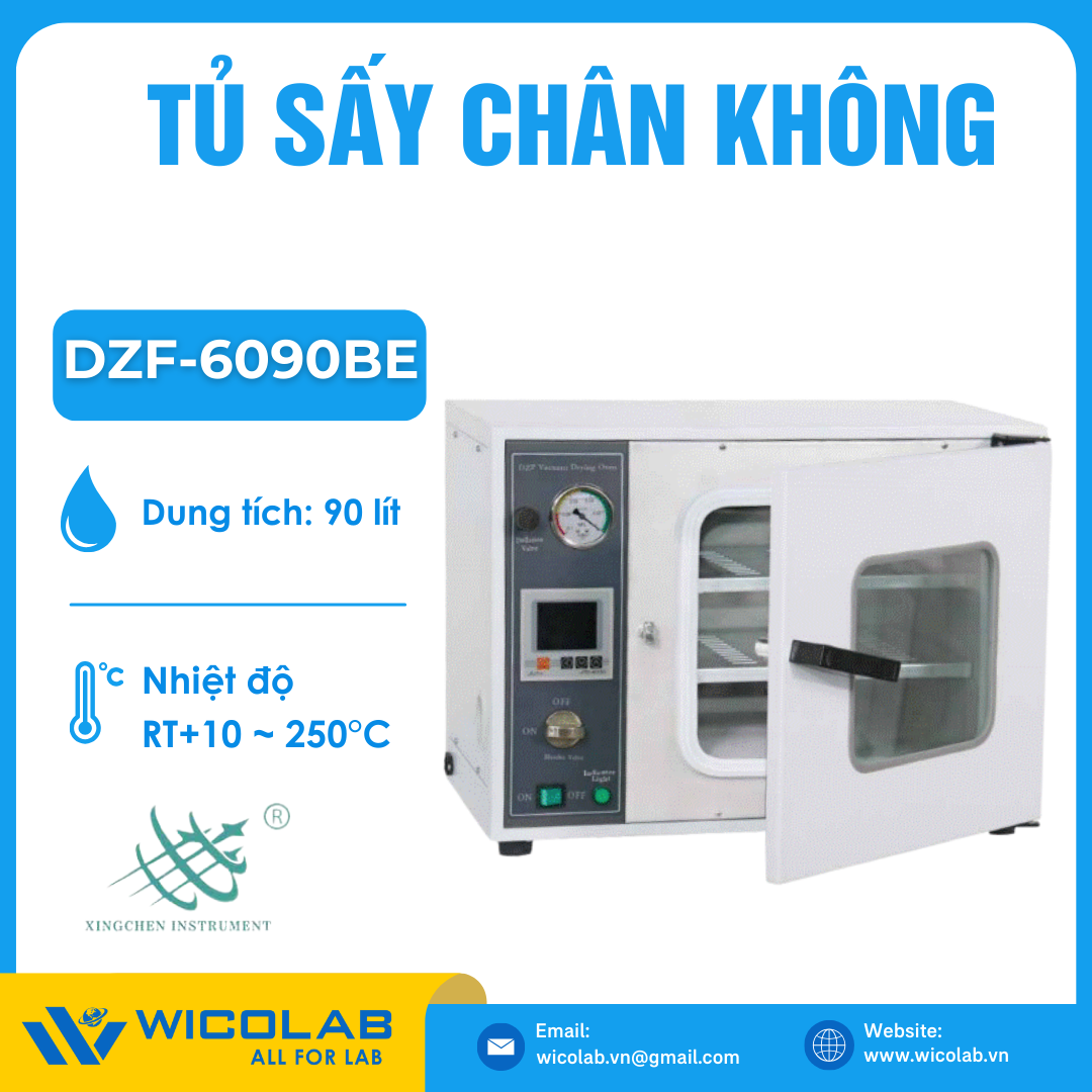 DZF-6090BE ⭐ Tủ sấy chân không do hãng Xingchen - Trung Quốc thiết kế với dung tích 90 lít, buồng inox 304. Tủ đảm bảo độ chân không - Gia nhiệt chính xác - Độ đồng đều cao. Được sử dụng rộng rãi để sấy khô mẫu, nung chảy sáp và xử lý nhiệt trong các phòng thí nghiệm: Ngành thép, khai thác khoáng sản, viện nghiên cứu khoa học Hoá học, y tế, y học... Sản phẩm được nhập khẩu và phân phối chính hãng bởi Wicolab. Bảo hành 12 tháng