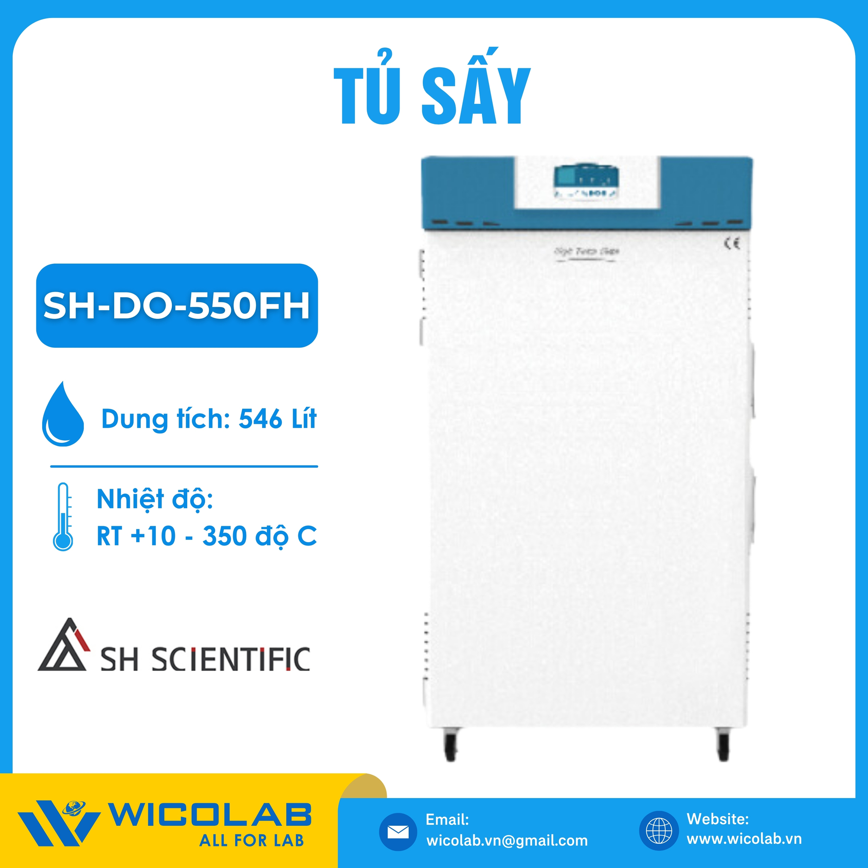 SH-DO-550FH 🌟 Tủ sấy đối lưu cưỡng bức nhiệt độ cao 350 độ, với dung tích 540 lít. Tủ được thiết kế và chế tạo bởi hãng SH Scientific - Hàn Quốc. Tủ có mức độ đồng đều nhiệt độ cao, độ chính xác và kiểm soát nhiệt độ ổn định. Sản phẩm được nhập khẩu và phân phối chính hãng bởi WICOLAB. Bảo hành lên tới 12 tháng. Hỗ trợ giao hàng toàn quốc.