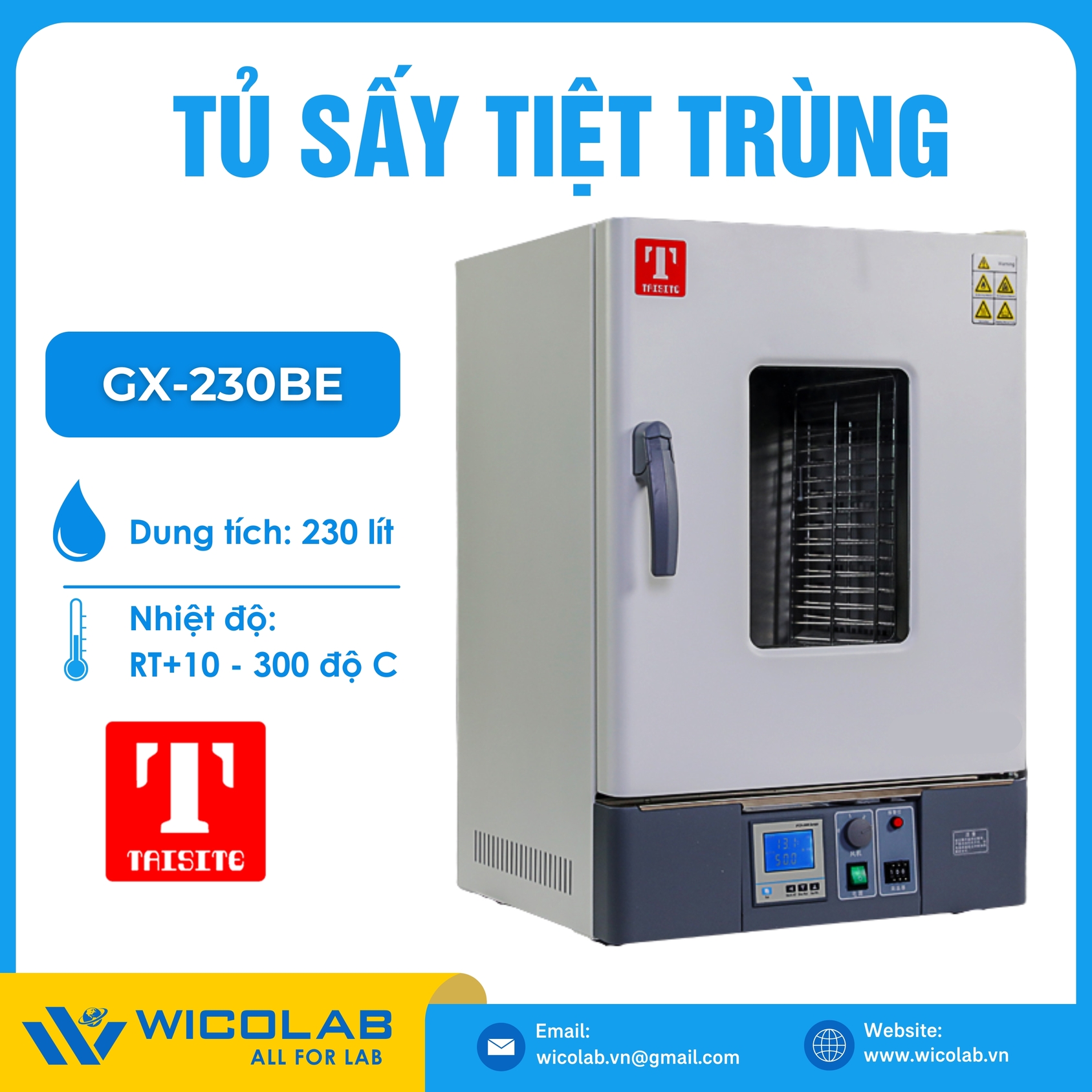 GX-230BE 🌟 tủ sấy tiệt trùng dung tích 230 lít, lòng tủ inox, dải nhiệt độ RT+10°C - 300°C. Sản phẩm được sản xuất bởi hãng Taisite - Trung Quốc, được nhập khẩu và phân phối chính hãng bởi WICOLAB. Bảo hành 12 tháng. Hỗ trợ giao hàng toàn quốc