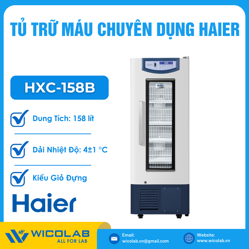 HXC-158B🌟Tủ lạnh trữ máu dung tích 158 lít, thiết kể kiểu tủ đứng do hãng Haier BioMedical thiết kế và chế tạo. Màn hình LED cùng phím bấm đơn giản dễ dàng theo dõi, cài đặt nhiệt độ. Hệ thống lạnh được cấp nguồn bằng máy nén chất lượng cao. Sản phẩm được phân phối chính hãng bởi Wicolab. Bảo hành lên tới 12 tháng. Hỗ trợ giao hàng toàn quốc.