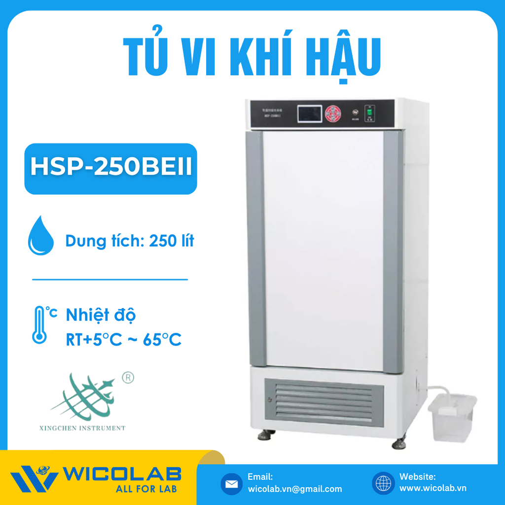 HSP-250BEII 🌟 Dòng tủ tạo môi trường nhiệt độ, độ ẩm ổn định do hãng Xingchen - Trung Quốc thiết kế và chế tạo. Nhiệt độ - Độ ẩm chính xác và đồng đều cao. Tủ được trang bị bộ điều khiển PID với màn hình LCD có đèn nền giúp người sử dụng dễ dàng vận hành với chức năng cài đặt nhiệt độ, độ ẩm, ánh sáng, thời gian... Tự động ngắt khi kết thúc thời gian cài đặt. Sản phẩm được nhập khẩu và phân phối chính hãng bởi Wicolab.